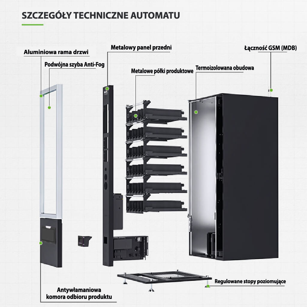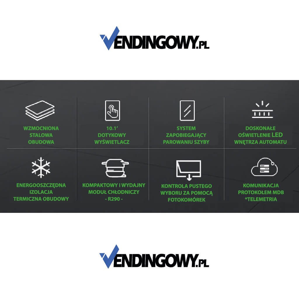 Energooszczędna izolacja termiczna obudowy dodatkowo obniża koszty eksploatacji i czyni automat idealnym do pracy 24/7.